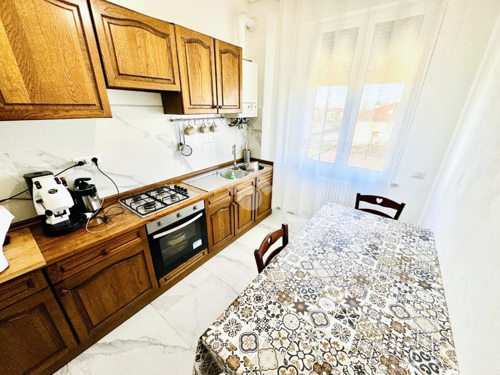 Ampia e luminosa zona giorno con accesso sul balcone, cucina separata e abitabile, due camere matrimoniali spaziose, un bagno moderno finestrato.